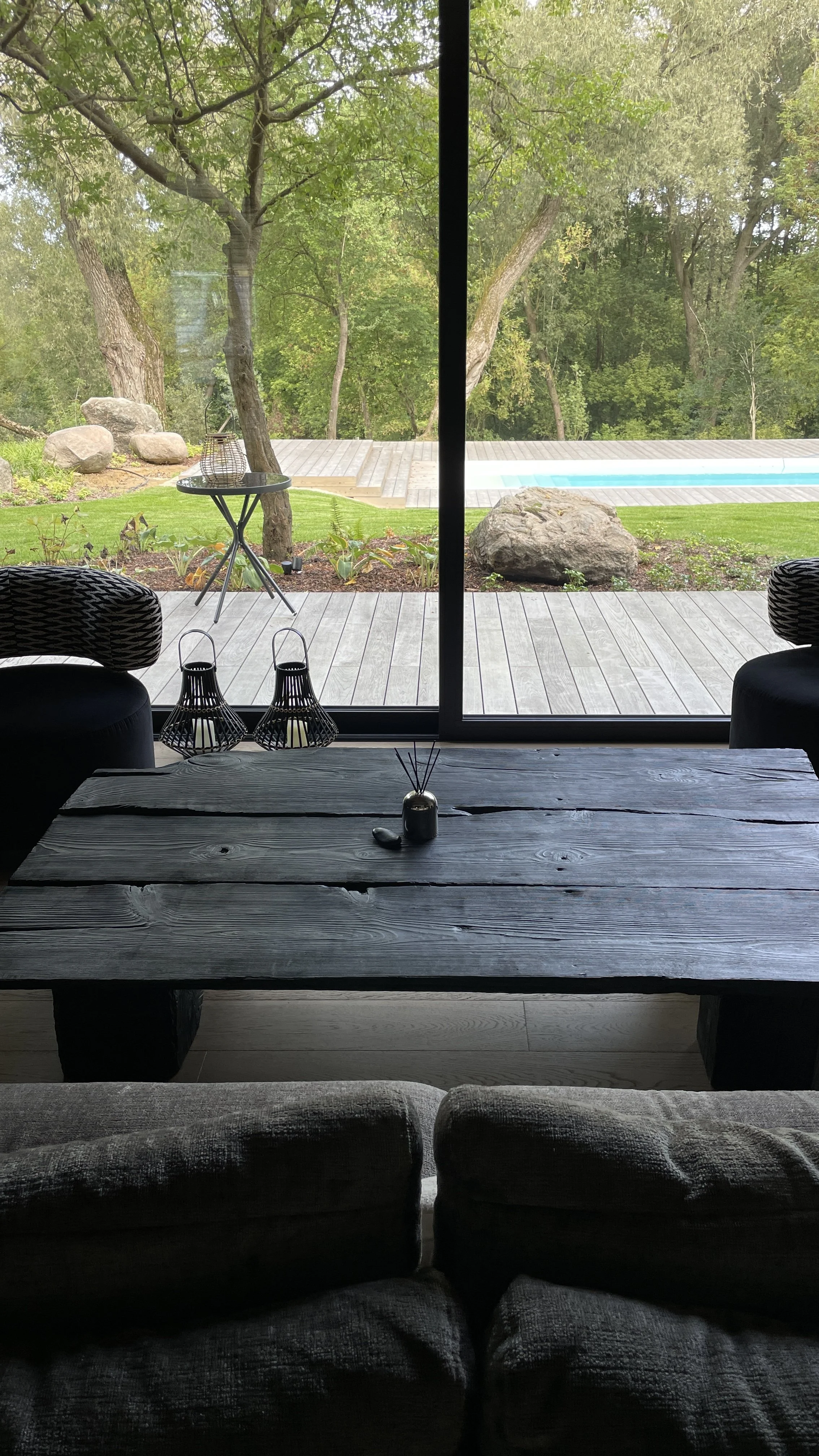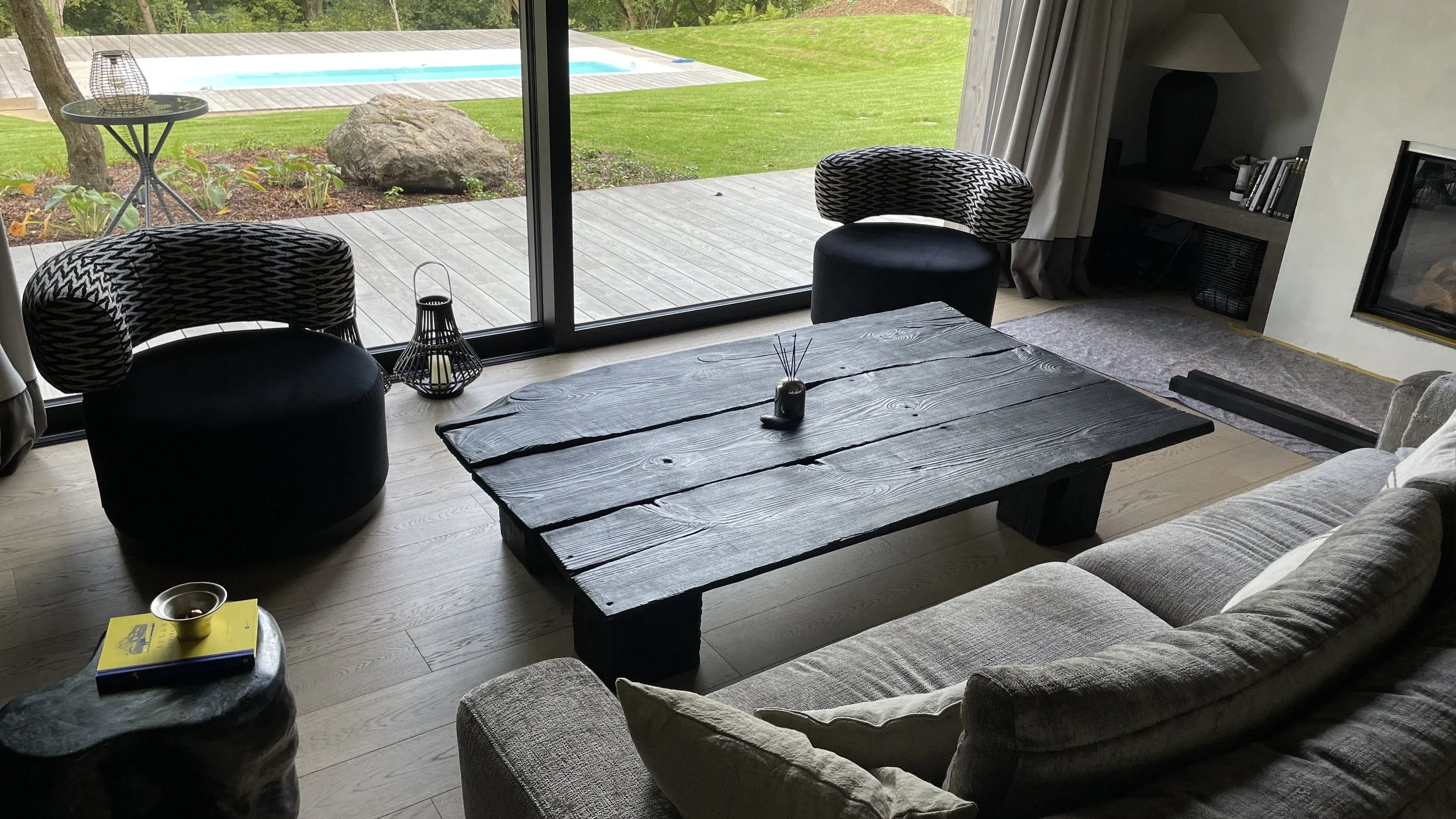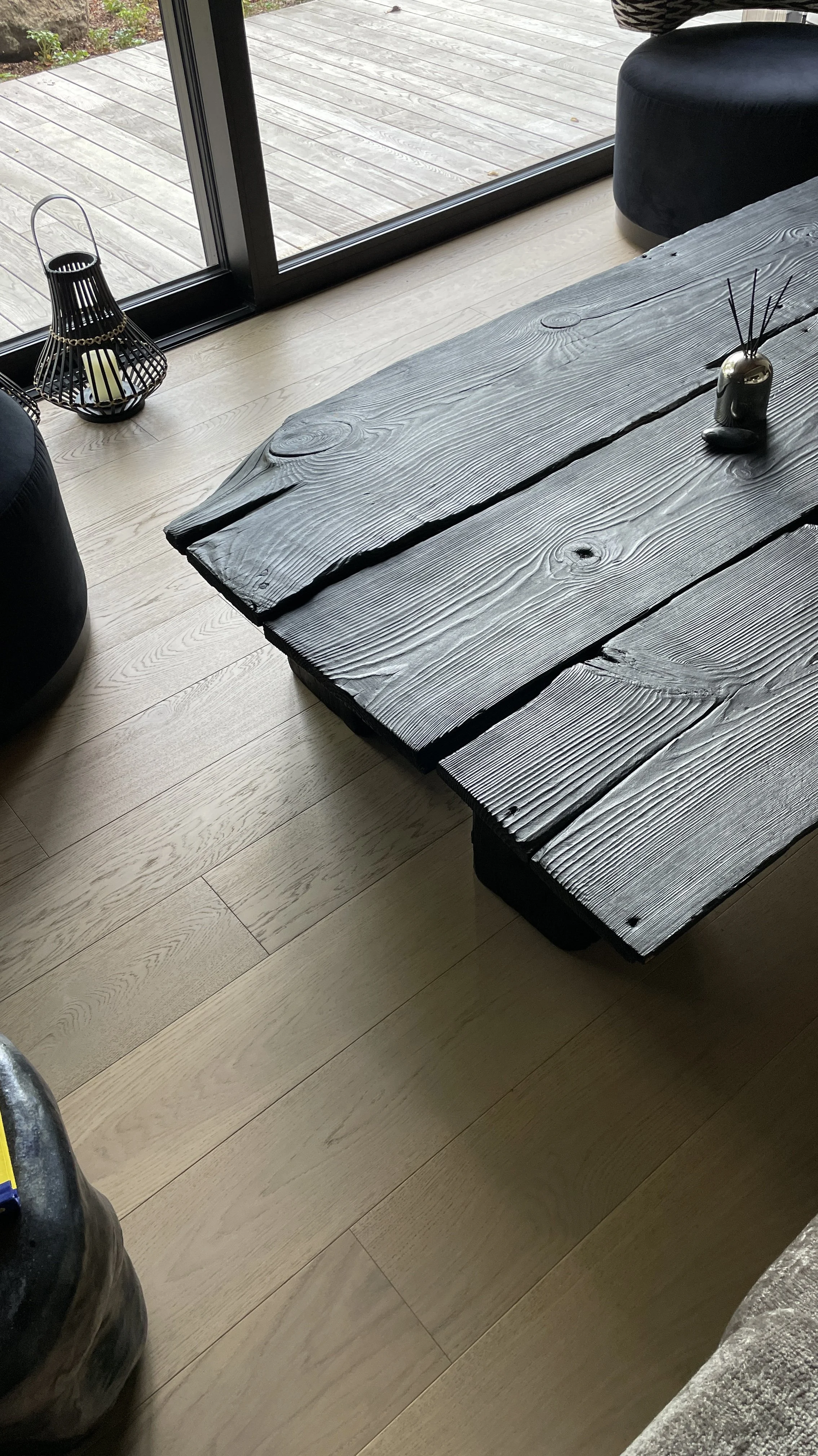 Crafted from long-seasoned solid pine and finished with the ancient Japanese Shou Sugi Ban technique, the Elephant table is a striking blend of raw, natural form and refined design.